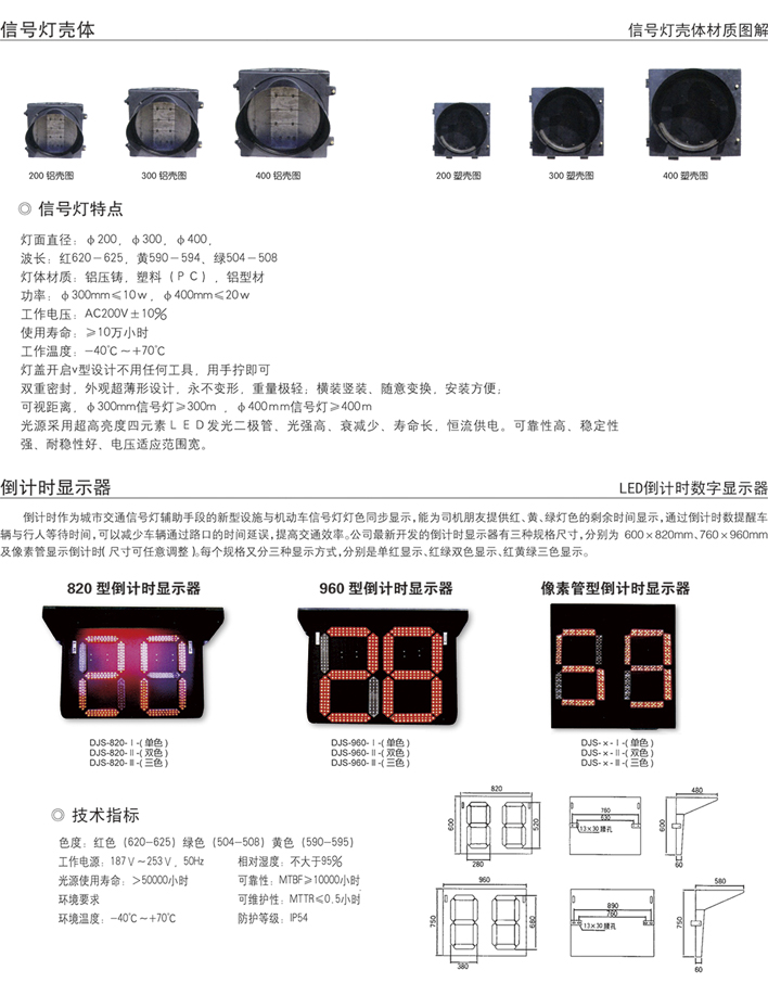 交通信號燈光源采用進口超高亮度LED,具有亮度柔和均勻.無光暈色斑、無顆粒感.無光污染、低功率、大視角、采用恒流源,亮度穩(wěn)定無閃爍。燈殼采用一次性鋁壓鑄或I程塑料( PC )注塑成型,燈盤發(fā)光面直徑為200mm300mm.400mm。燈體可任意組合和橫豎安裝。